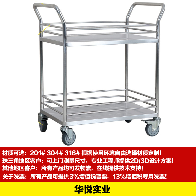 不鏽鋼手推(tuī)車(chē)特點外(wài)觀精美、是(shì)一種平麵(miàn)運輸(shū)設備,它在大(dà)小範圍內作業的方便性、實用性能適合大多數條件下少量(liàng)、小範圍的臨時短途運輸,無聲靜音,手感超(chāo)好、結實耐用、承載力好、自由移動 、走行輕快:由於腳輪采用了特殊的設計,減輕了(le)始動抵抗和走行抵抗(kàng)。使本產品達到了走行輕快(kuài)化、平整、安全,強(qiáng)度(dù)好、美觀、耐用,耐酸、耐堿(jiǎn)、防鏽(xiù)、輪子可采用防靜(jìng)電靜音(yīn)輪、普通(tōng)輪。歡迎新老客戶來電洽(qià)談!